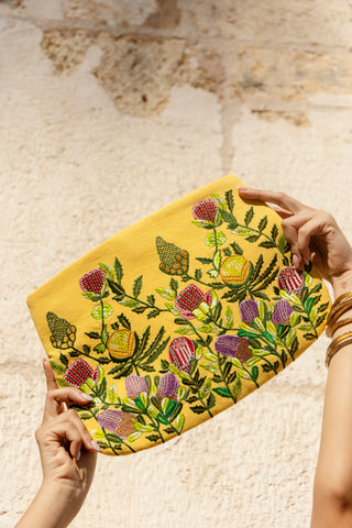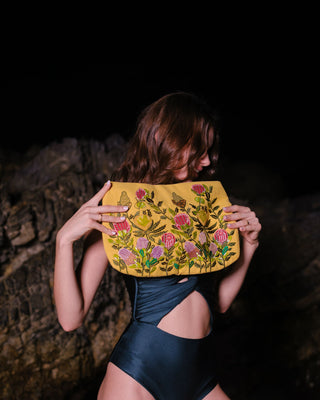 The Eloise is a signature piece in our collection. Inspired by the meaning of elegance and strength, these are qualities we aim to reflect in every design. This bag is crafted in jute, velvet, or polysilk.